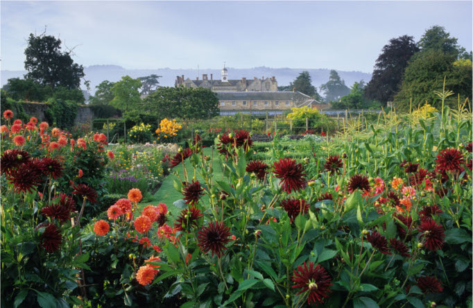 Or the fabulous colours in the long borders: mixtures of golds, reds, deep blues and purples. Plants romp all over one another in a fantastic, enthusiastic riot.
